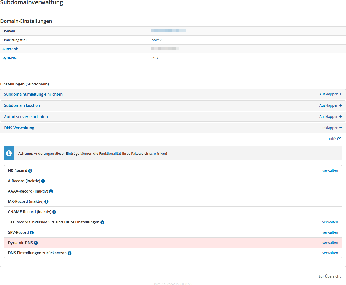 In the following, we give an example of how to set up ddclient using the German Internet hosting provider Strato. First, you need to create a subdomain. Then you need to enable DynDNS for this domain: